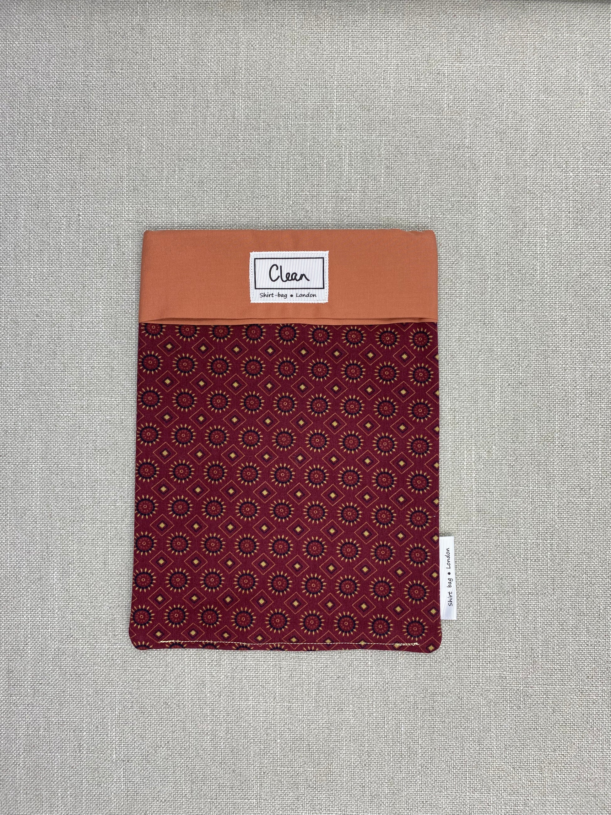 Shirt-bags are handmade from recycled fabrics, so there may be a slight variation in size. Some may feel slightly thicker than others as not all shirts are the same. You may even notice a colour change or stitch mark where a pocket or seam has been. Recycled fabric is not flawless.