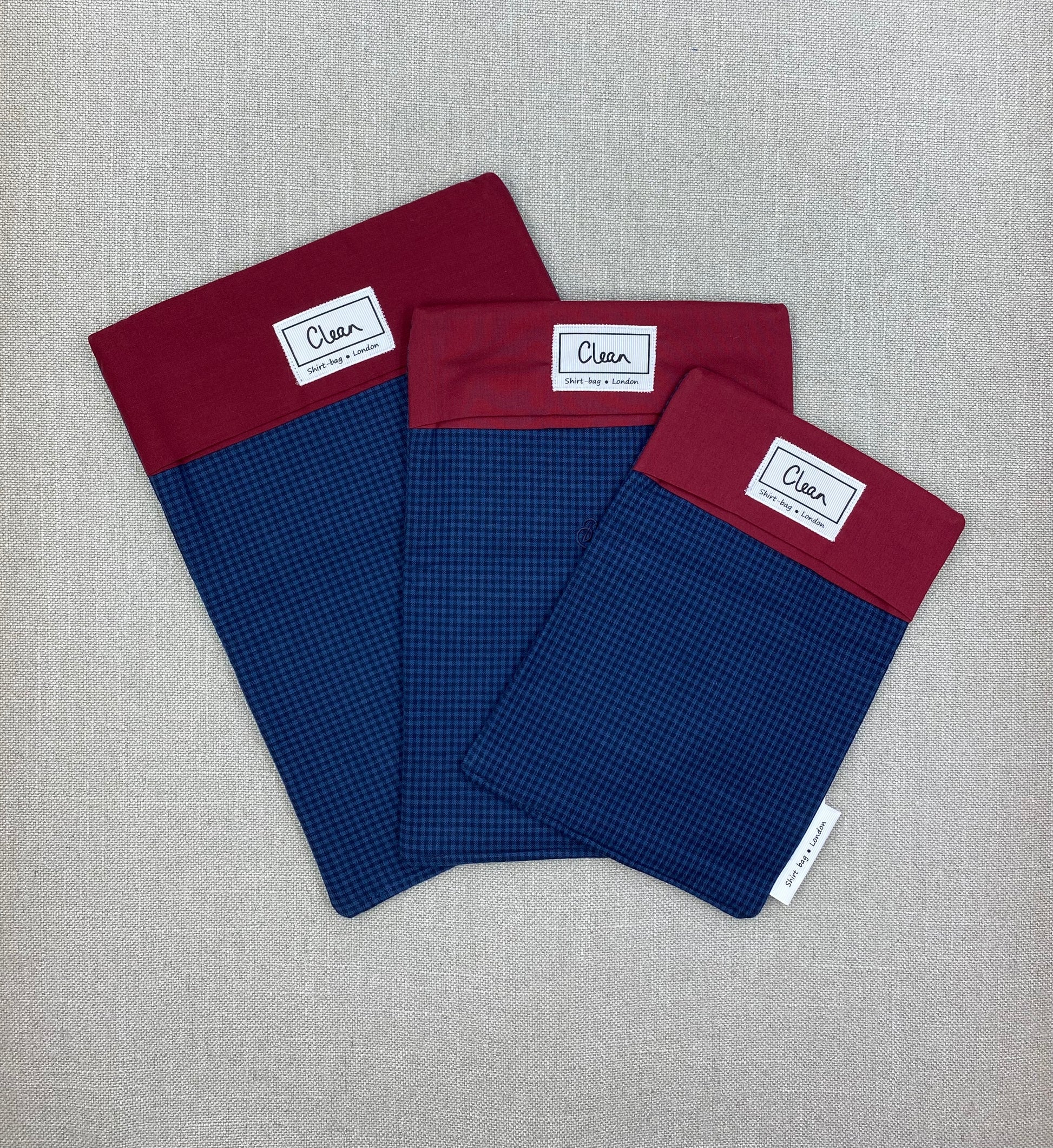 Shirt-bags are handmade from recycled fabrics, so there may be a slight variation in size. Some may feel slightly thicker than others as not all shirts are the same. You may even notice a colour change or stitch mark where a pocket or seam has been. Recycled fabric is not flawless.
