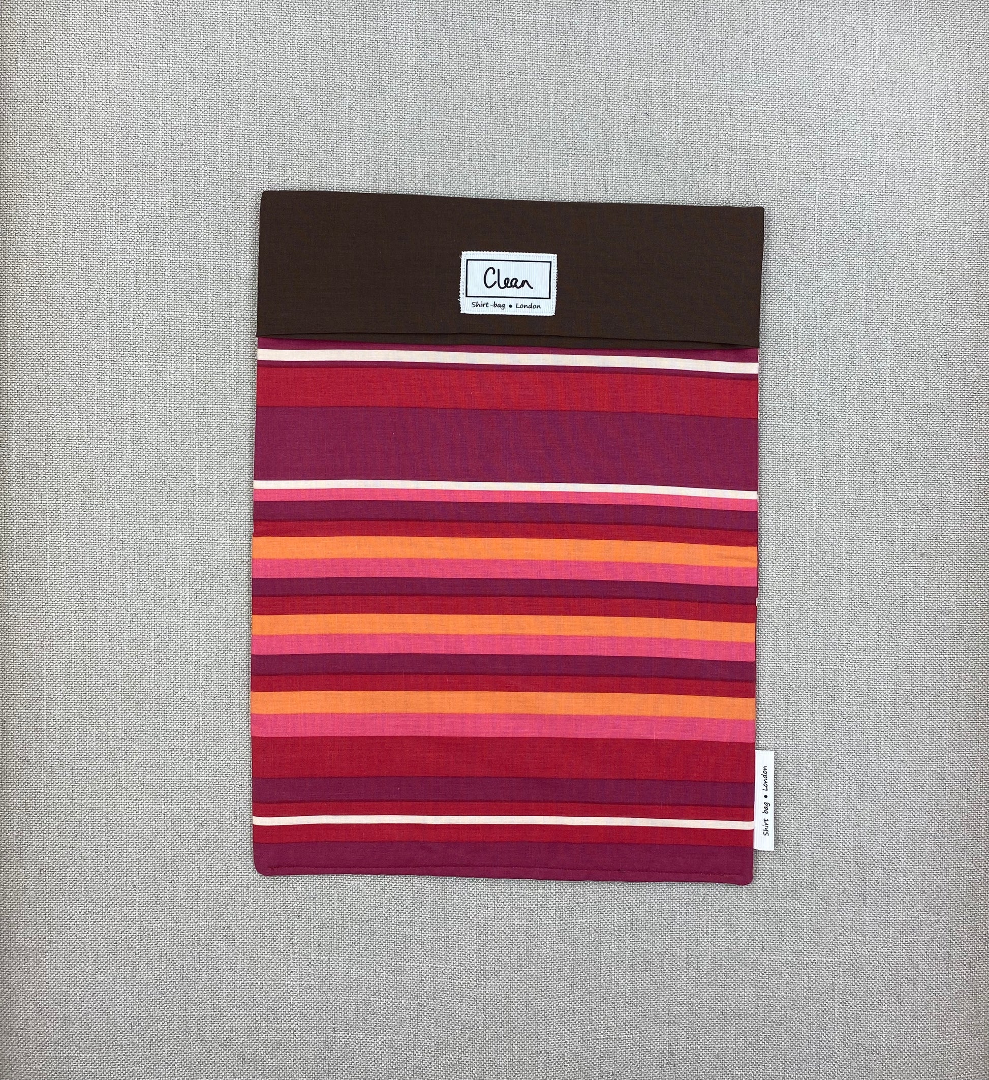 Shirt-bags are handmade from recycled fabrics, so there may be a slight variation in size. Some may feel slightly thicker than others as not all shirts are the same. You may even notice a colour change or stitch mark where a pocket or seam has been. Recycled fabric is not flawless.